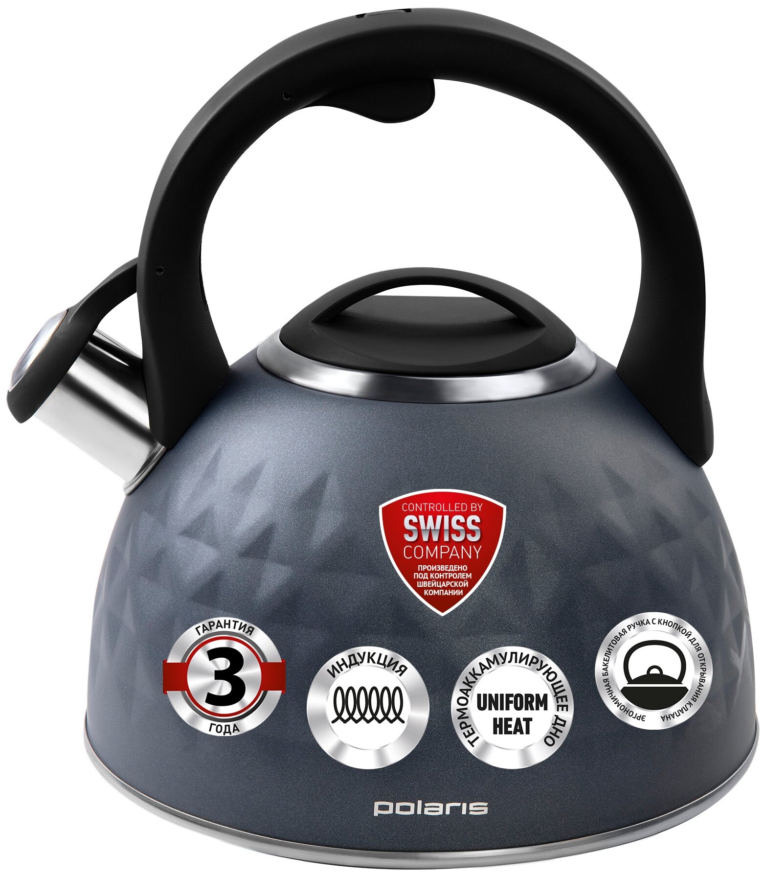 Чайник со свистком Polaris Kontur-3L, нержавеющая сталь, 3 л