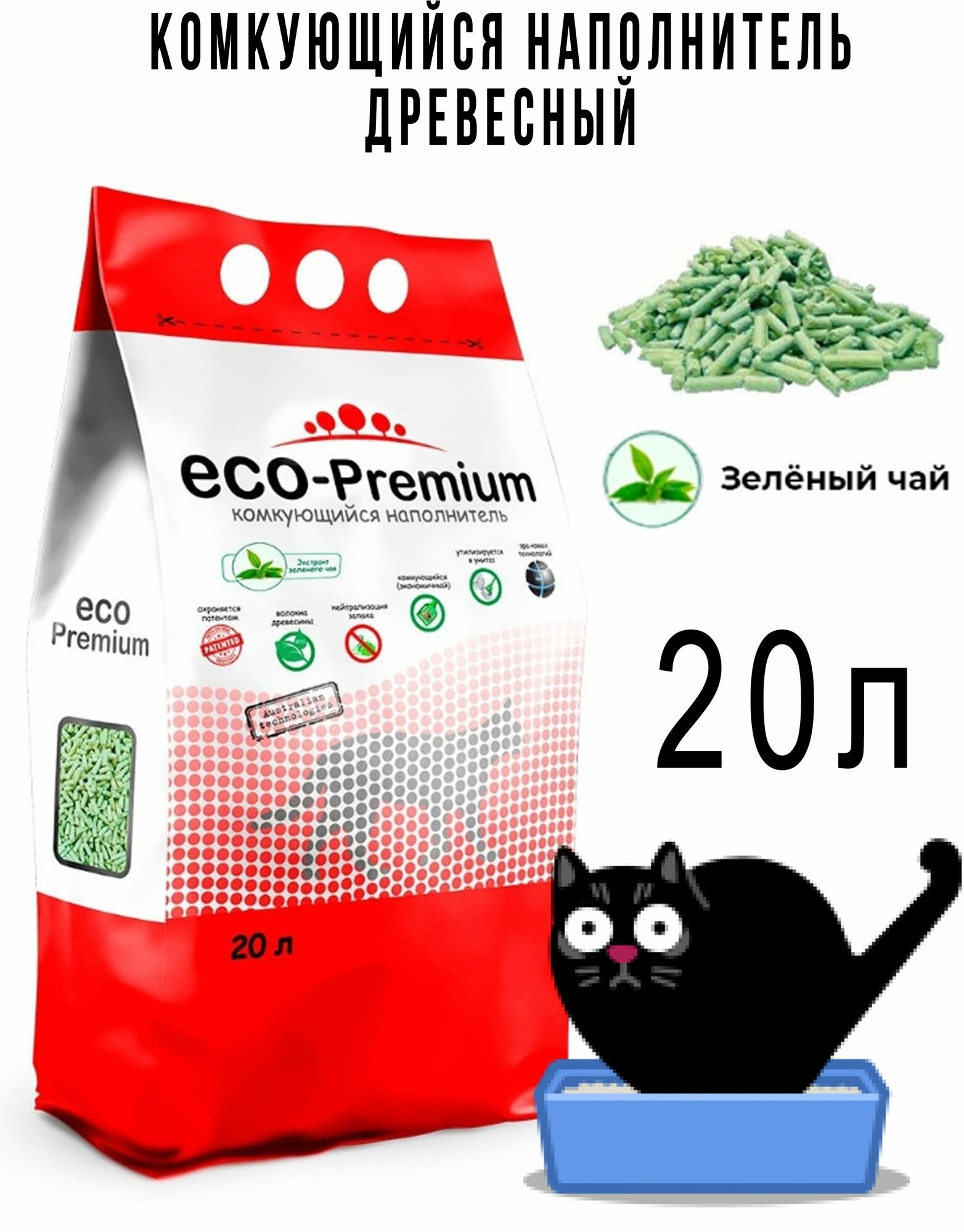 СохранитьНаполнитель ECO-Premium комкующийся древесный с ароматом Зеленого чая 20л, 7.6 кг интересное: