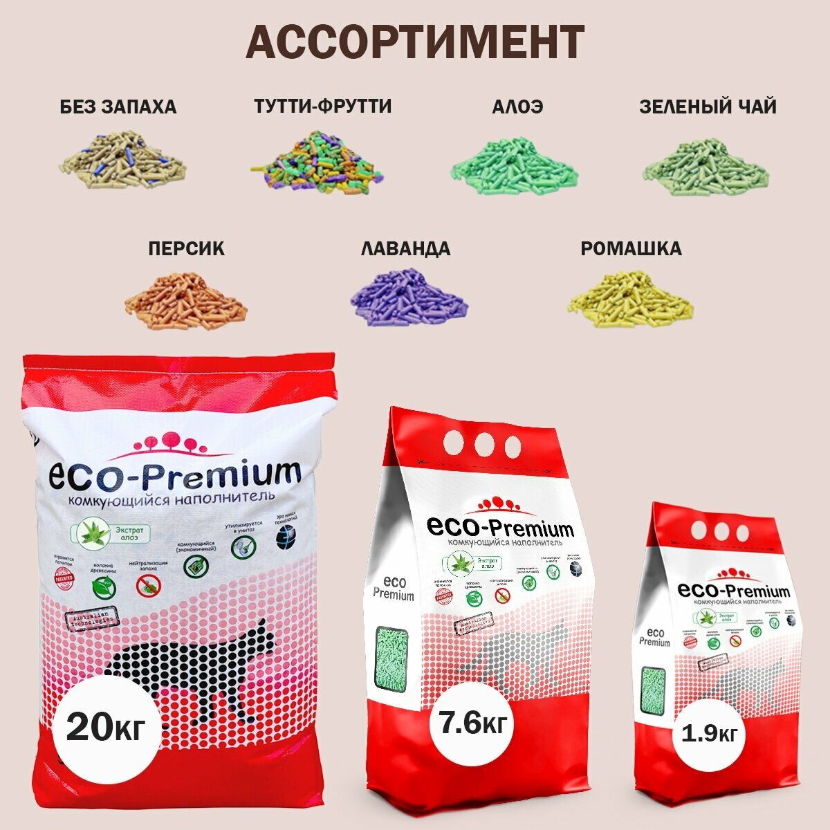 Наполнитель ECO-Premium комкующийся древесный с ароматом Алоэ 20л, 7.6 кг