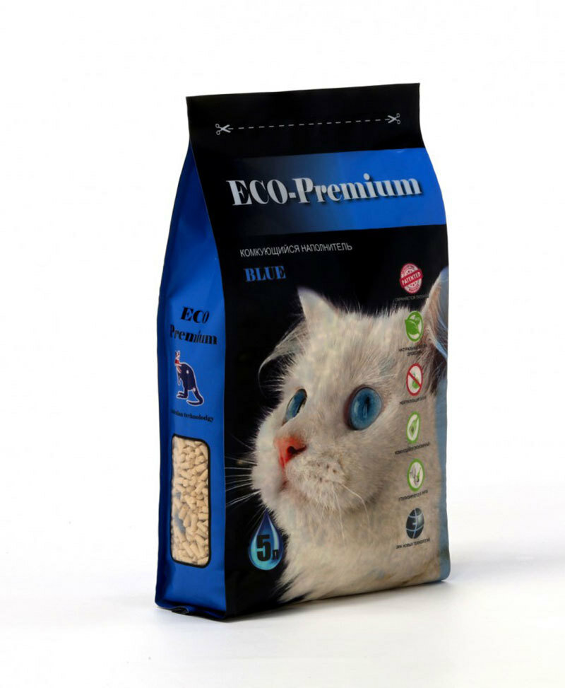 ECO-PREMIUM BLUE наполнитель древесный комкующийся для туалета кошек без запаха синий (1,9 кг)