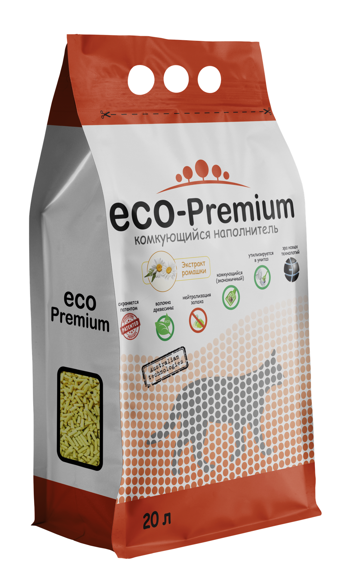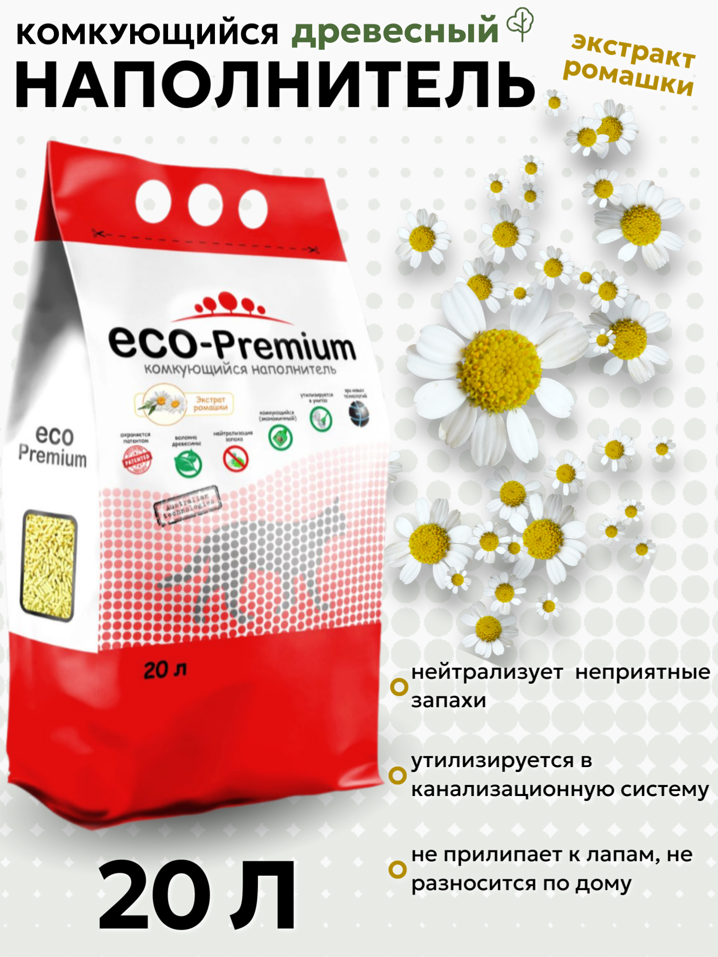 Наполнитель Эко Премиум для кошачьего туалета Древесный Комкующийся с ароматом Ромашки 20 л (7,6 кг)