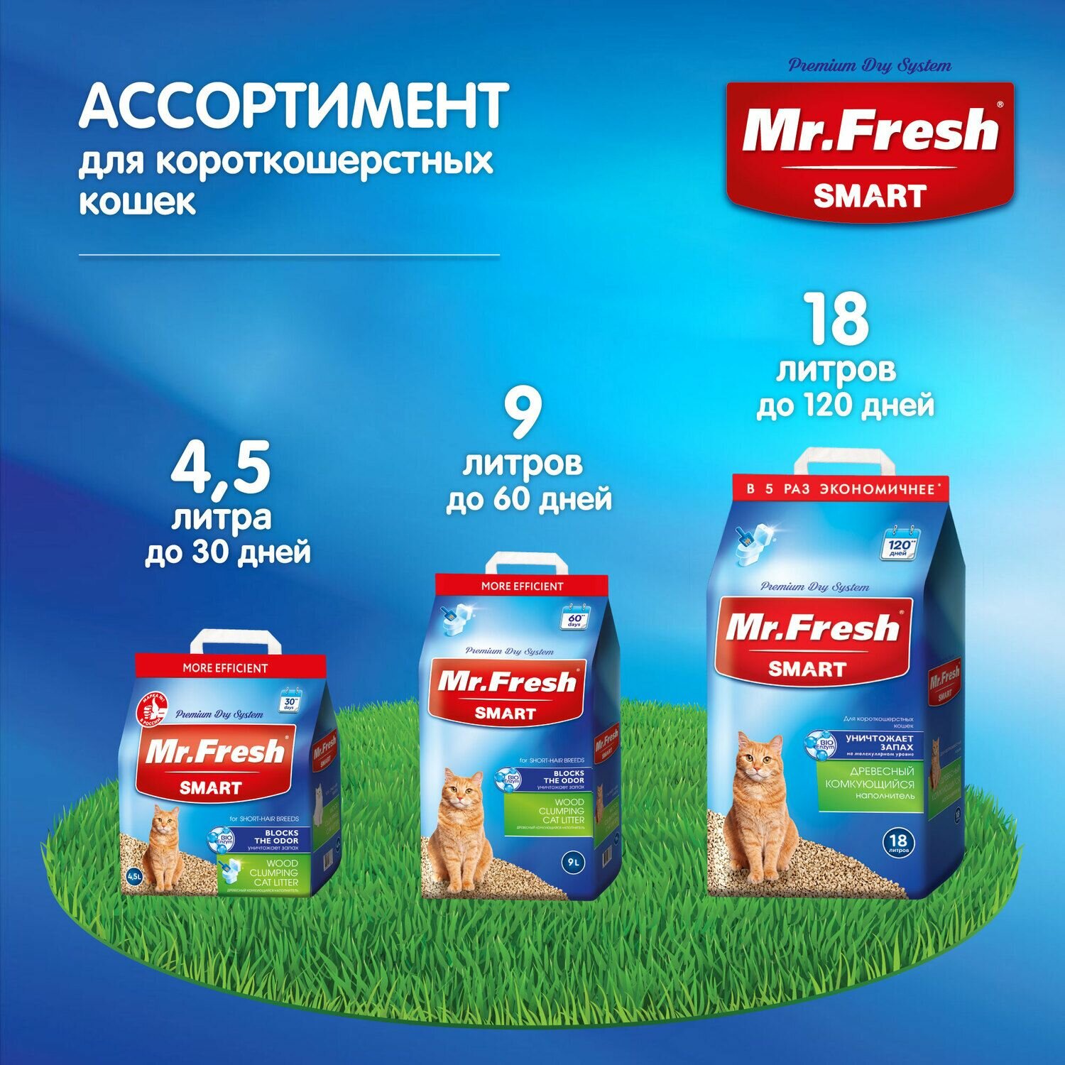 Наполнитель для кошек Mr.Fresh SMART для короткошёрстных кошек 4,5л