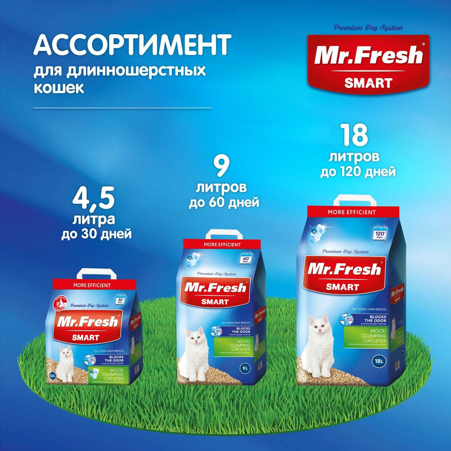 Mr.Fresh SMART наполнитель для длинношёрстных кошек 18л