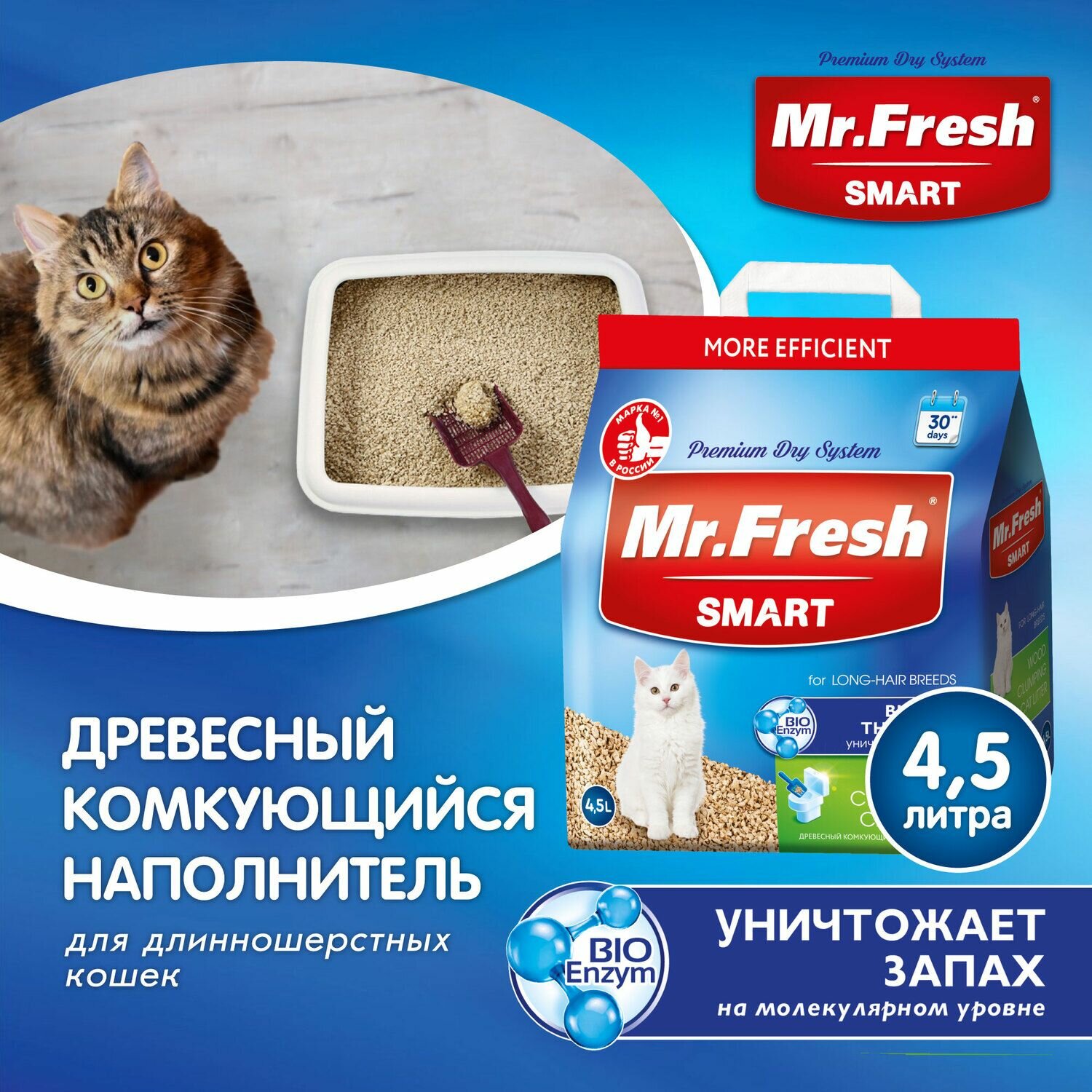 Mr.Fresh SMART наполнитель для длинношёрстных кошек 4,5л