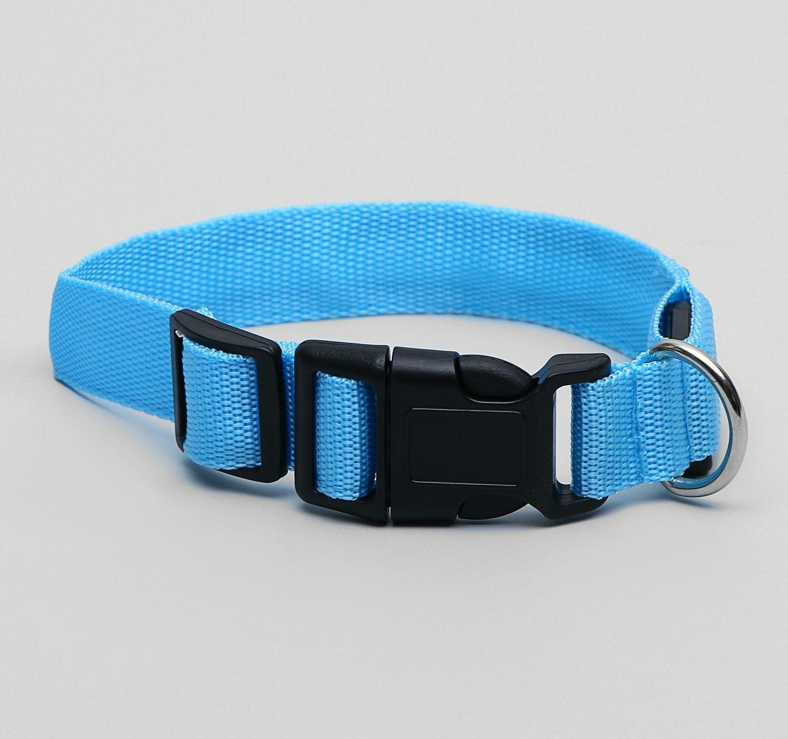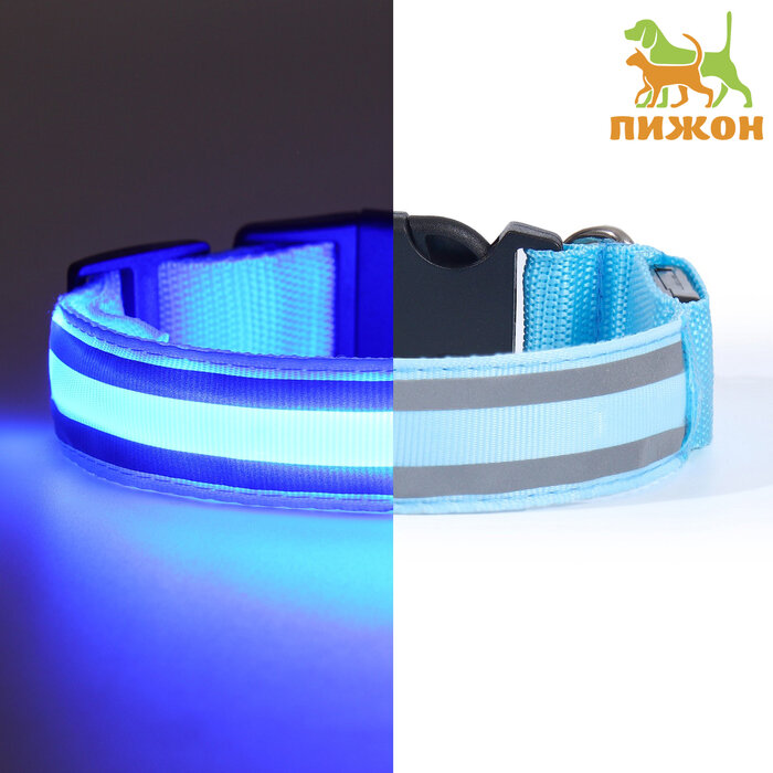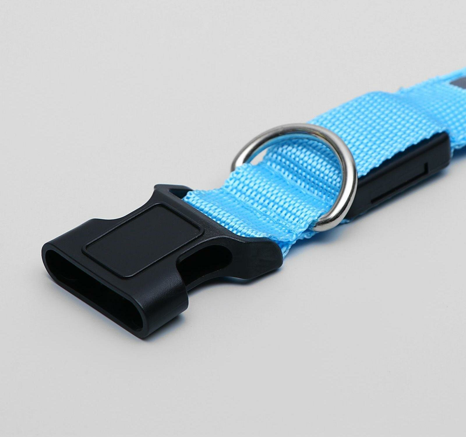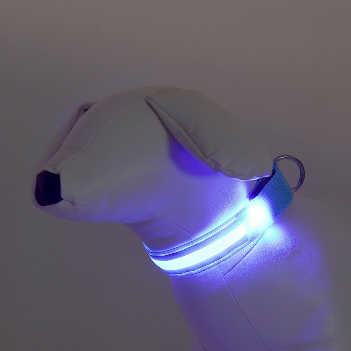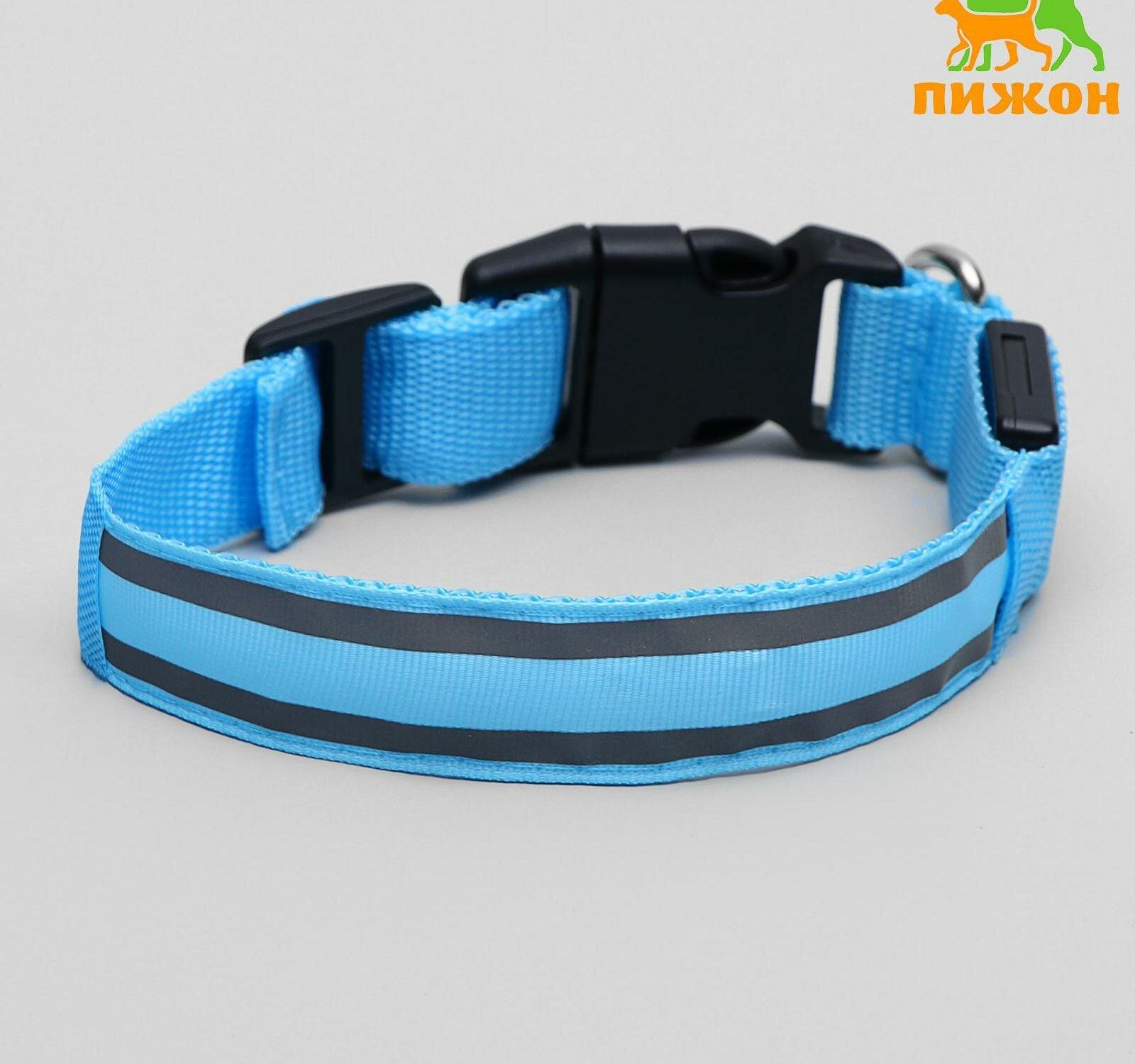 Купить Ошейник с подсветкой Двойная полоса размер S, ОШ 35-43 х 2,5 см, 3 режима свечения голубой, 1039596