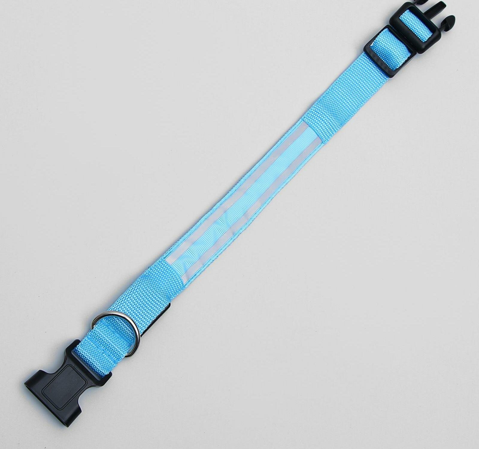 Светящийся ошейник со светоотражателем, 38-40 см, Голубой