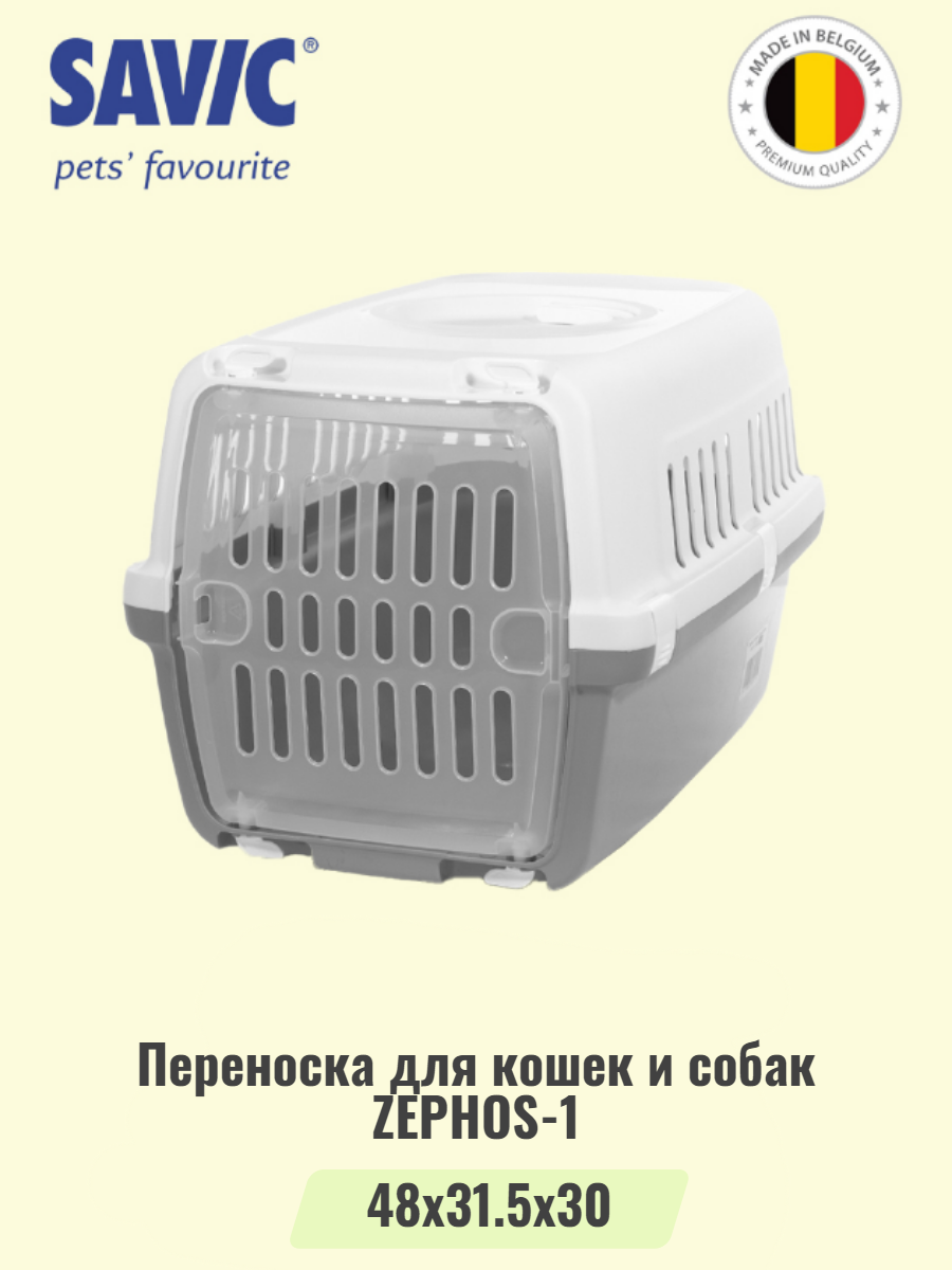 Переноска для кошек и собак SAVIC ZEPHOS-1 с пластиковой дверцей серая/белая