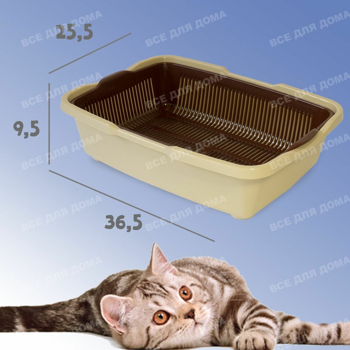 Лоток Туалет для кошек большой с сеткой , бежево-коричневый, 36х49х12,5 см