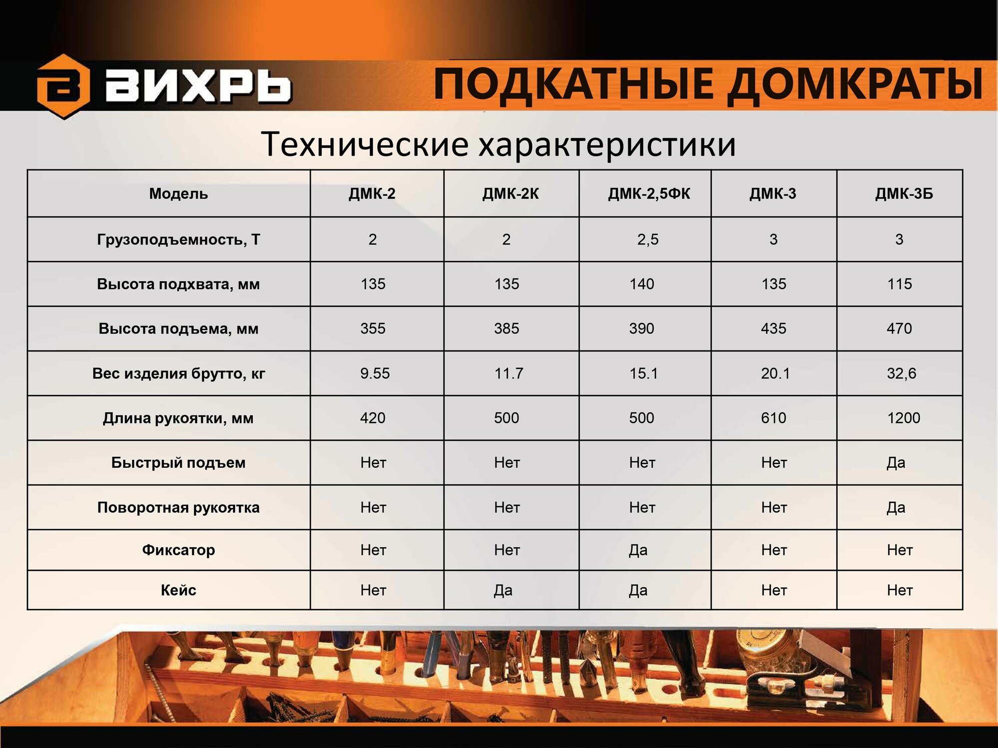 Ниже Вы можете прочитать отзывы на Домкрат гидравлический подкатный 2,5т (h-140-390мм) "Вихрь " ДМК-2,5ФК, ознакомится с подробными характеристиками, посмотреть интересные обзоры и фотографии на Домкрат гидравлический подкатный 2,5т (h-140-390мм) "Вихрь " ДМК-2,5ФК.