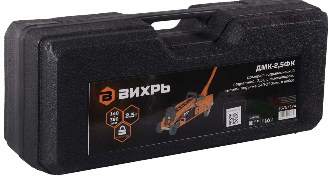 Вихрь Домкрат гидравлический подкатной Дмк-2,5фк 2,5 т, 140-390 мм, с фиксатором, в кейсе 73/5/4/4 .