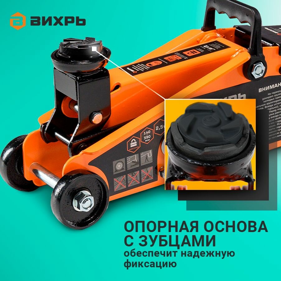 Гидравлический подкатной домкрат Вихрь 2,5 т, 140-390 мм, с фиксатором