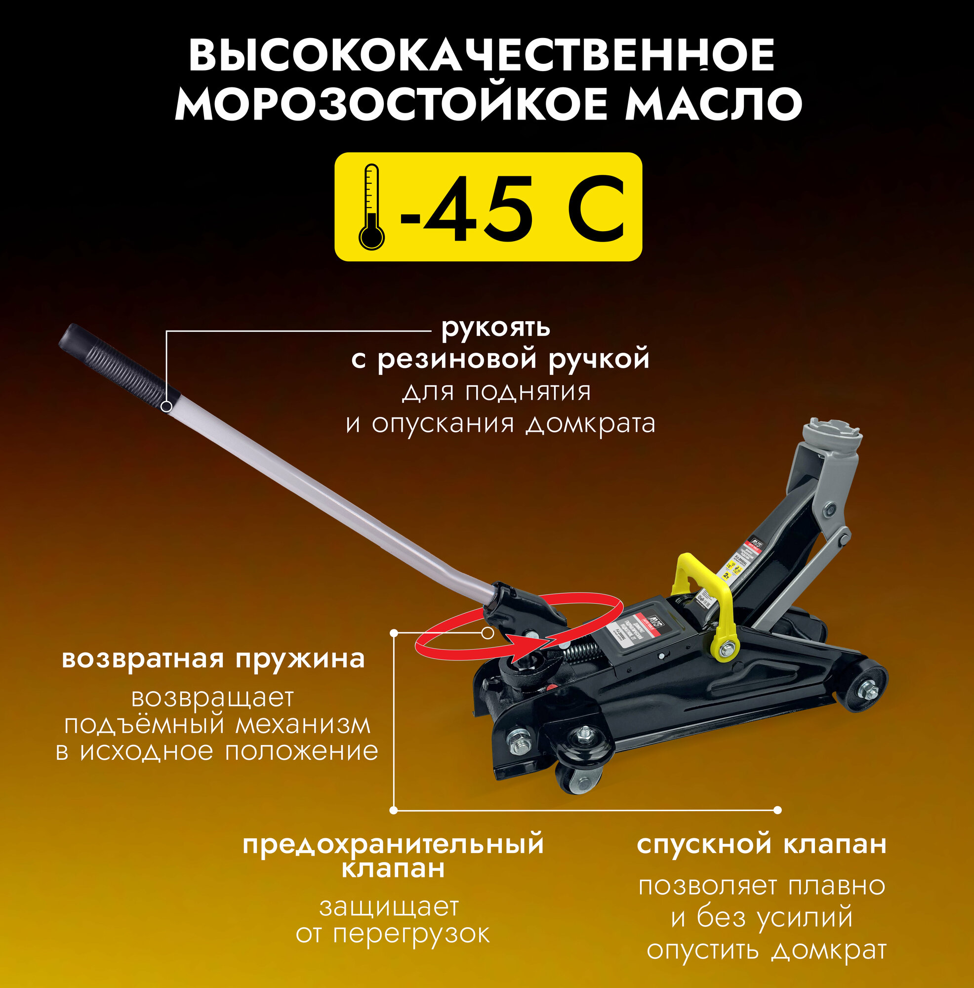 СохранитьДомкрат автомобильный (подкатной) гидравлический AVS FJ-2000AL (поворотная ручка 360 градусов), 2 тонны, A07814S интересное: