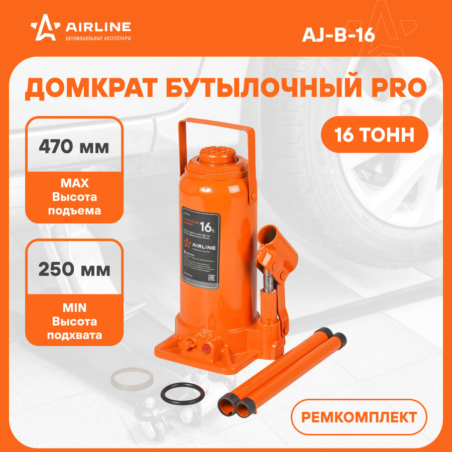 Домкрат Бутылочный 16Т Pro Min 250 Мм Max 470 Мм Ajb16 AIRLINE арт. ajb16