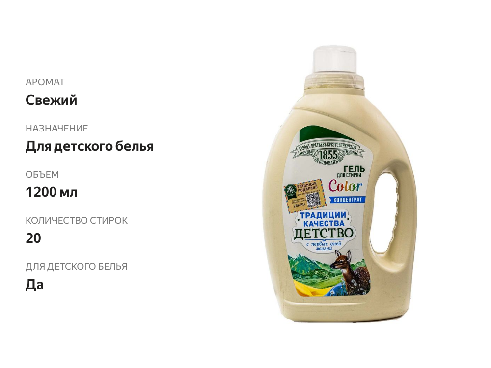 Гель для стирки детского белья завод братьев крестовниковых Традиции качества Детство Color, 1,2кг