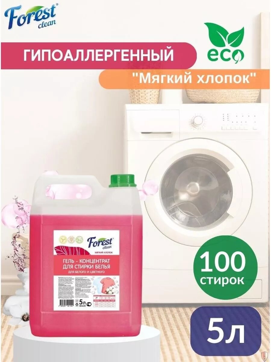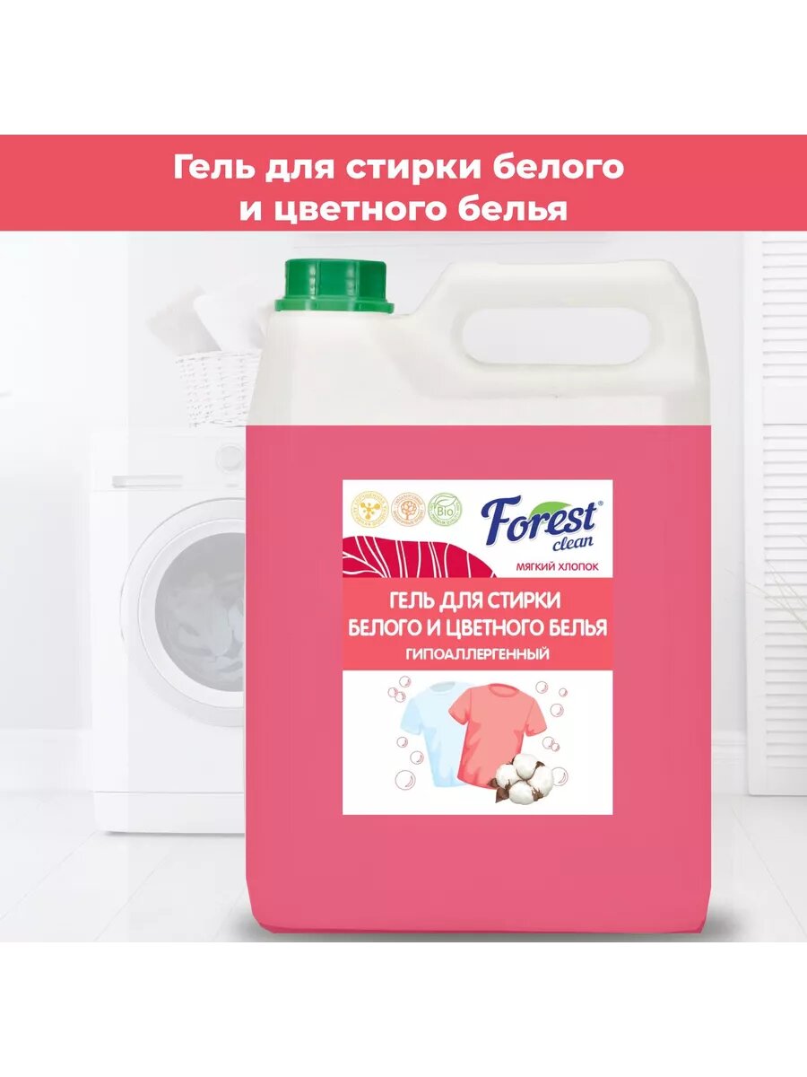 Гель для стирки 5л мягкий хлопок Forest Clean