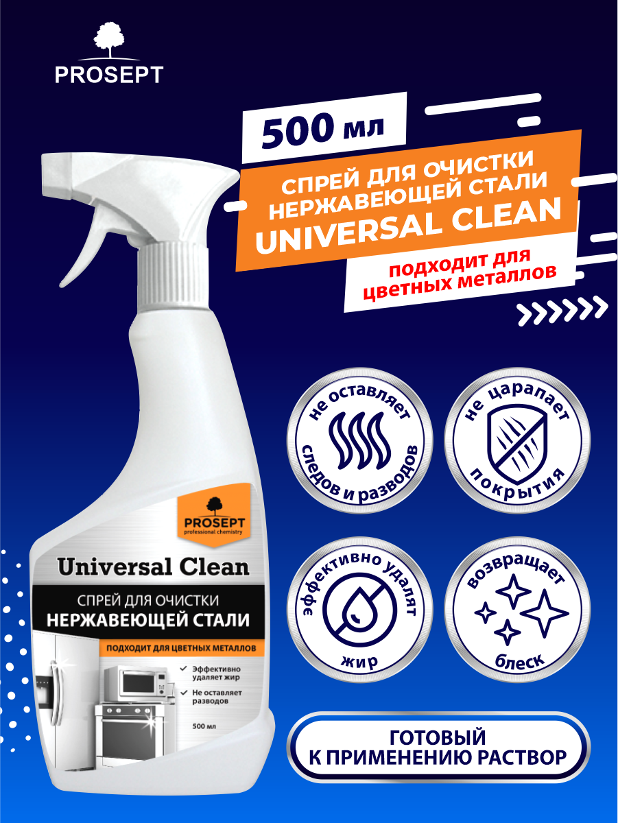 Купить Чистящий спрей Prosept Universal Clean для нержавеющей стали и цветных металлов, 500 мл