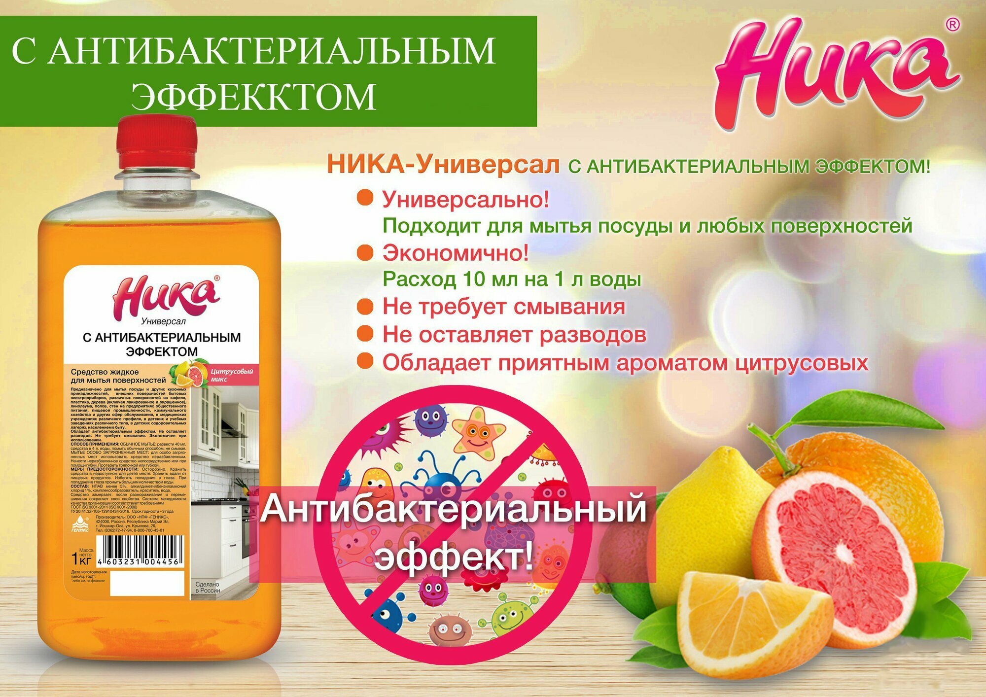 Ника Средство жидкое для мытья поверхностей "Ника- Универсал" антибактериальное, 1 кг