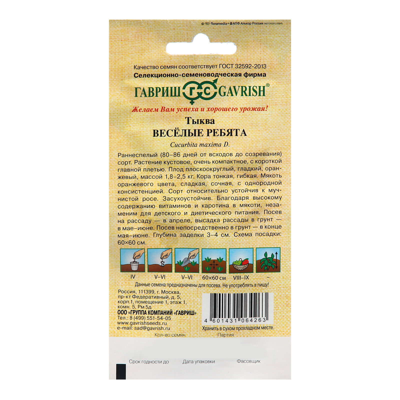 СохранитьСемена Тыква Веселые ребята (гавриш) 1г интересное: