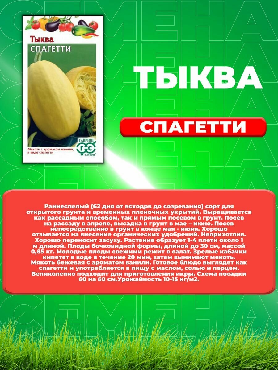 Ниже Вы можете прочитать отзывы на Семена Тыква Спагетти 2г Ранние (Гавриш), ознакомится с подробными характеристиками, посмотреть интересные обзоры и фотографии на Семена Тыква Спагетти 2г Ранние (Гавриш).