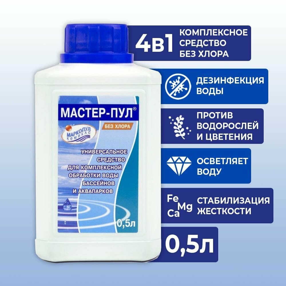 Маркопул Кемиклс Бесхлорное средство для очистки воды в бассейне "Мастер-пул", универсальное, 0,5 л