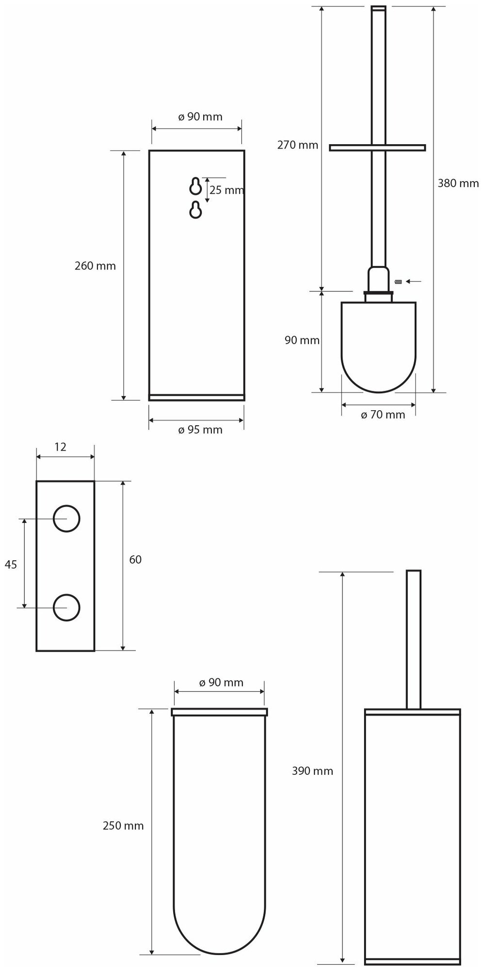 Ёрш настенный из нержавеющей стали, черный , GFmark