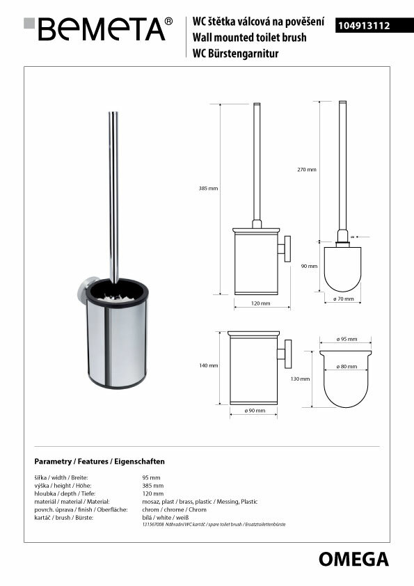 Подвесной ершик Bemeta Omega черная щетка 104913117 .