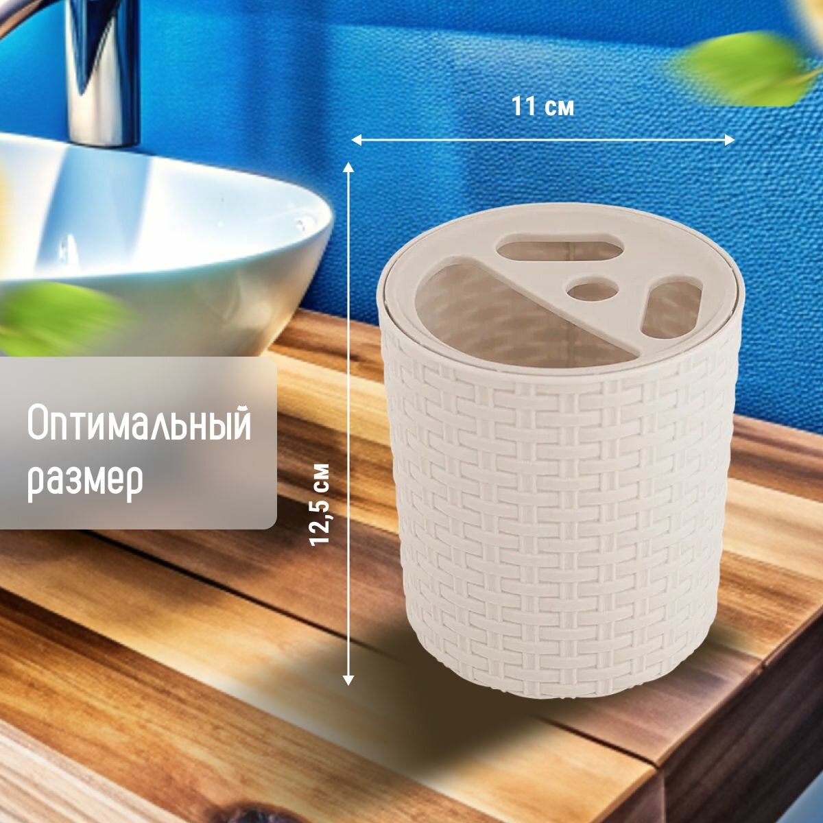 Купить Подставка для зубных щеток и пасты, держатель для ванной, стакан для хранения зубной щетки Альтернатива Плетенка, слоновая кость