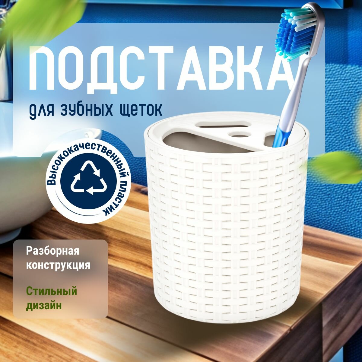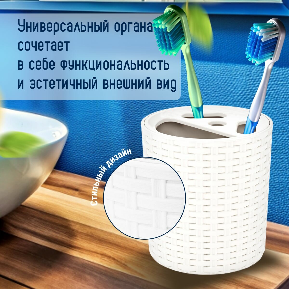 Купить Подставка для зубных щеток и пасты, держатель для ванной, стакан для хранения зубной щетки Альтернатива Плетенка, белый