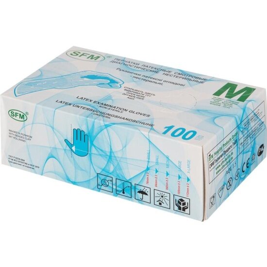 Перчатки SFM Hospital (СФМ Госпиталь) смотровые нестерильные опудренные р.M (7-8) 100 шт.