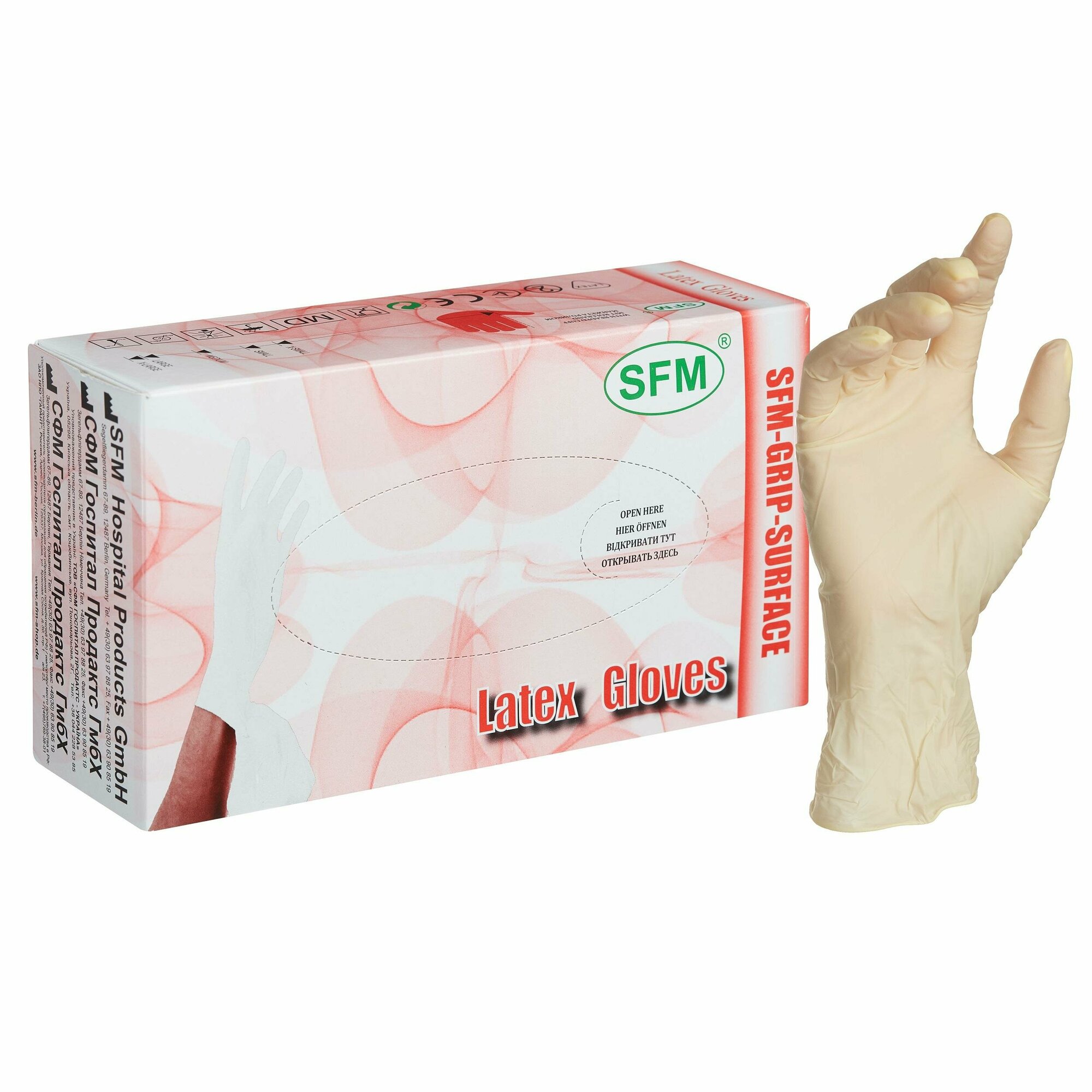 Перчатки латексные смотровые SFM Grip-Surface Германия, 50 пар (100 штук), размер S (малый)