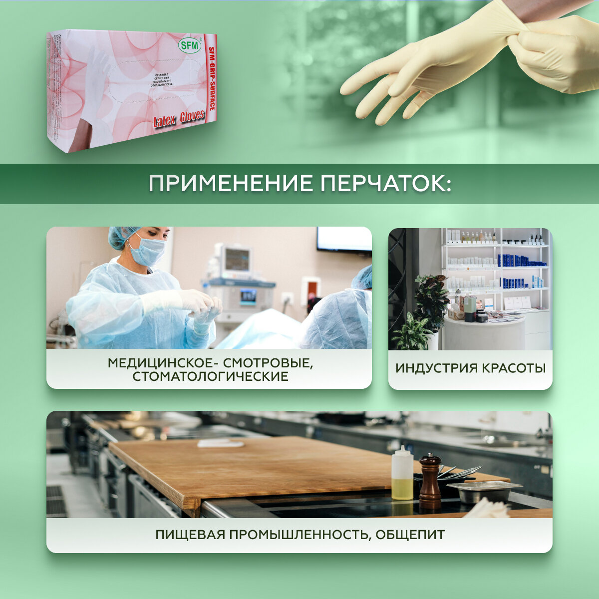 Перчатки смотровые SFM Latex, 50 пар, размер: M, цвет: бежевый