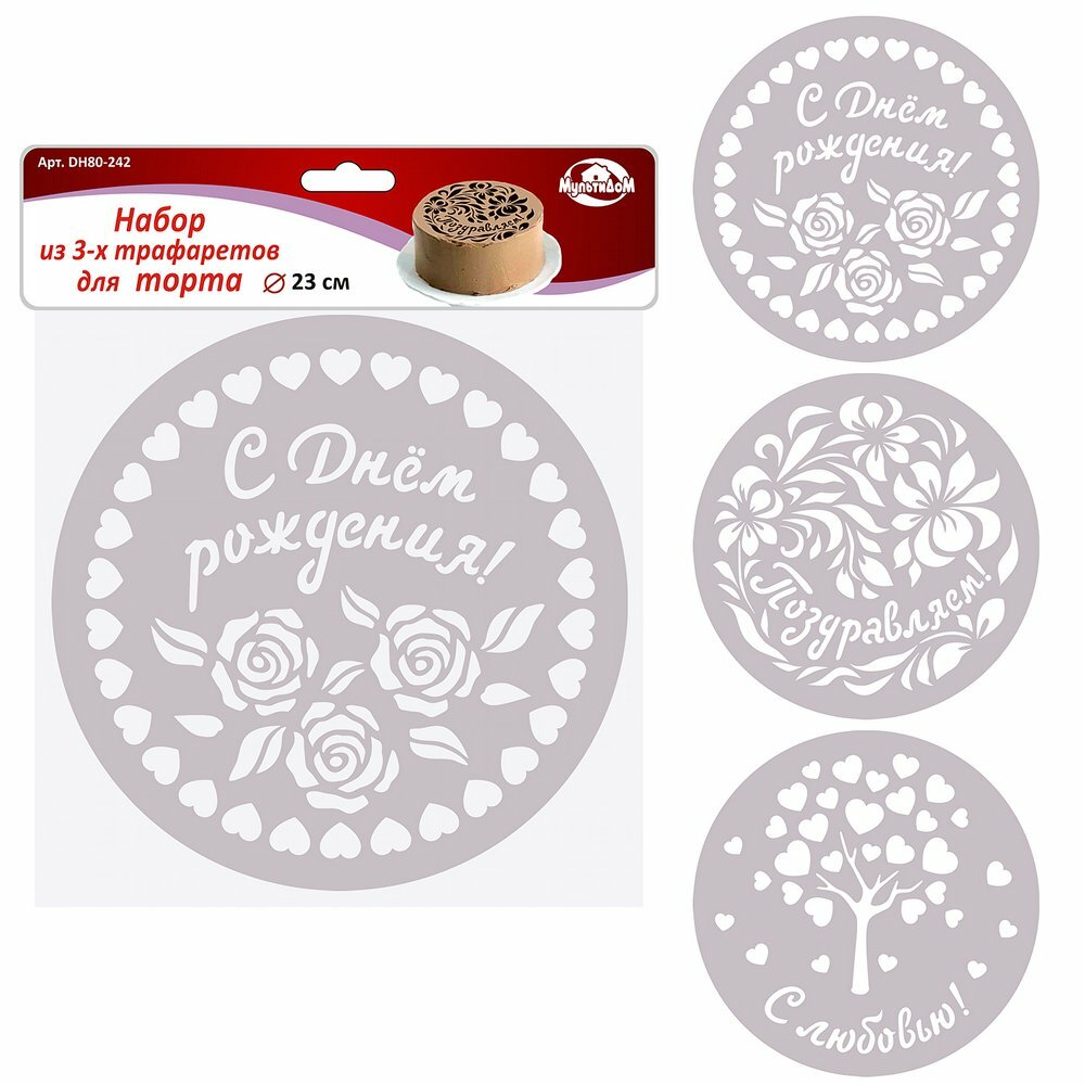 Набор трафаретов для торта 3 шт Мультидом, 23 см