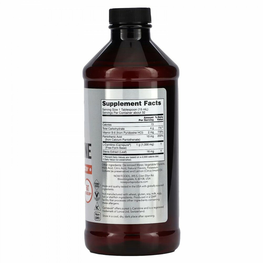 Now Foods, Sports, Liquid L-Carnitine, Citrus, 1,000 mg, 16 fl oz (473 ml)