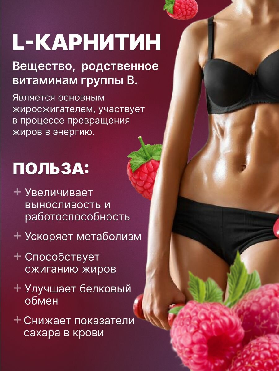 СохранитьL-карнитин 2000 мг, 20 ампул по 25 мл, малина, жиросжигатель для похудения мужчинам и женщинам, Л карнитин интересное: