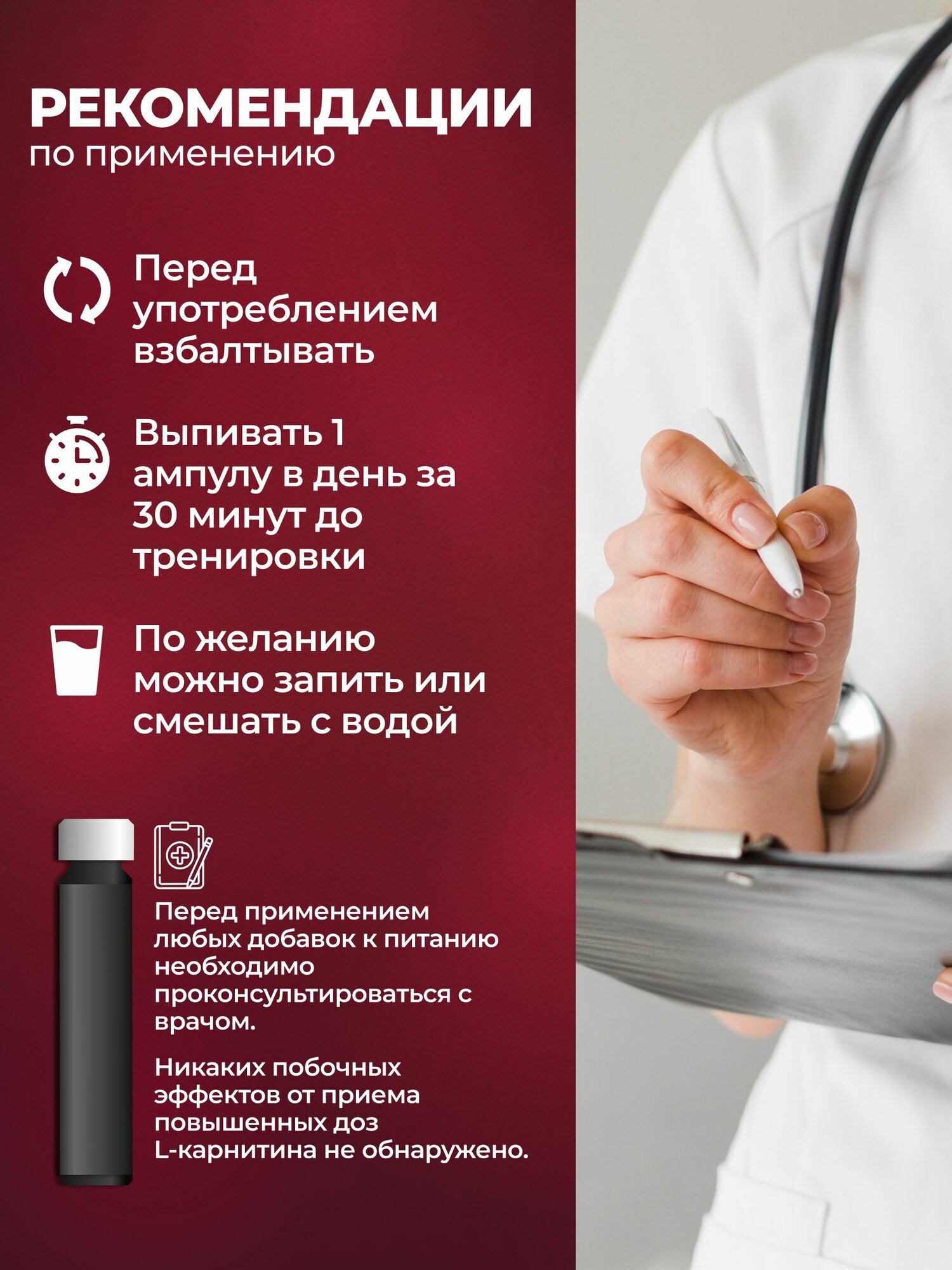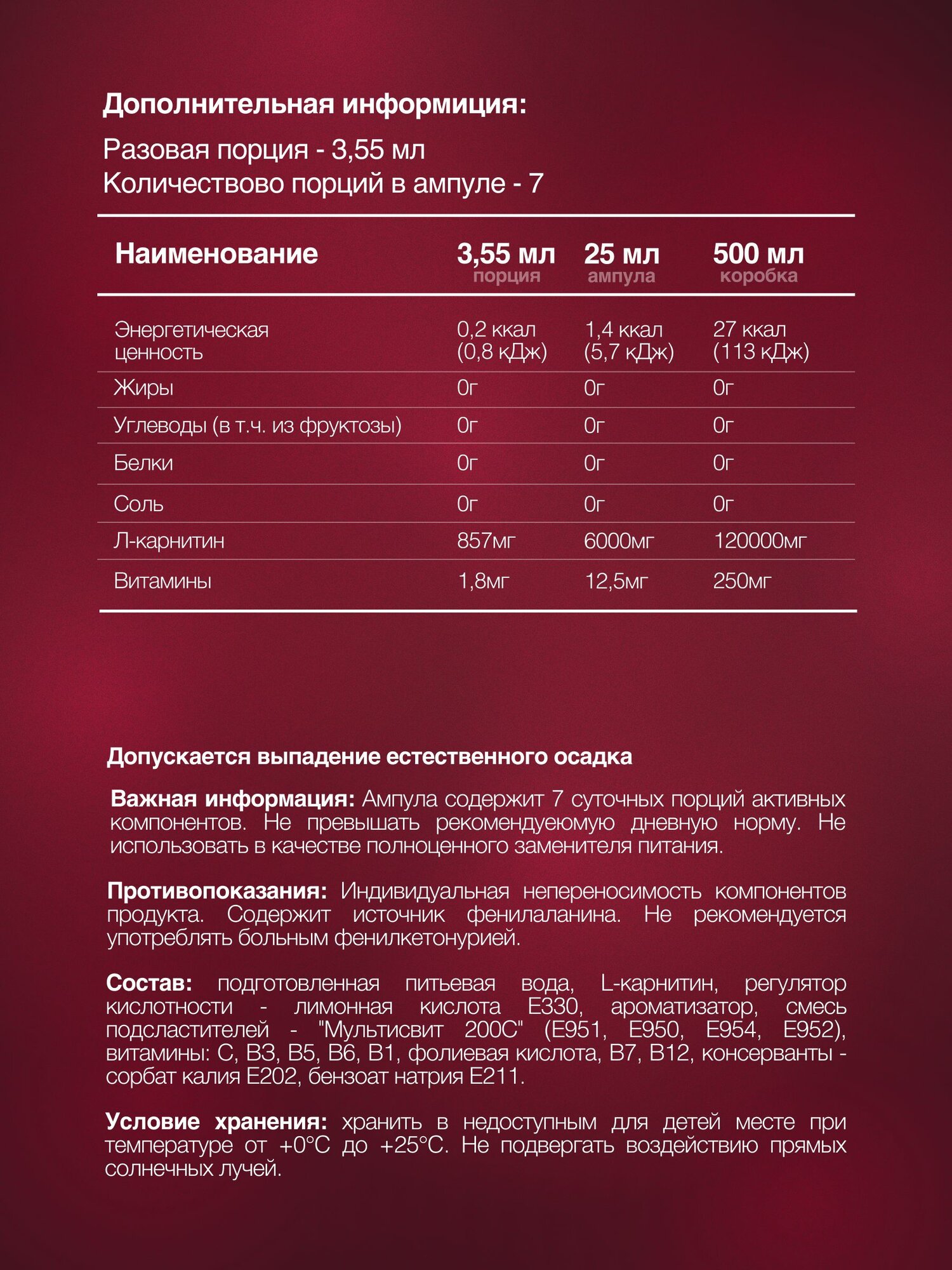 L-карнитин 6000 мг, L carnitine, 20 ампул по 25 мл, черная смородина, жиросжигатель для похудения мужчинам и женщинам