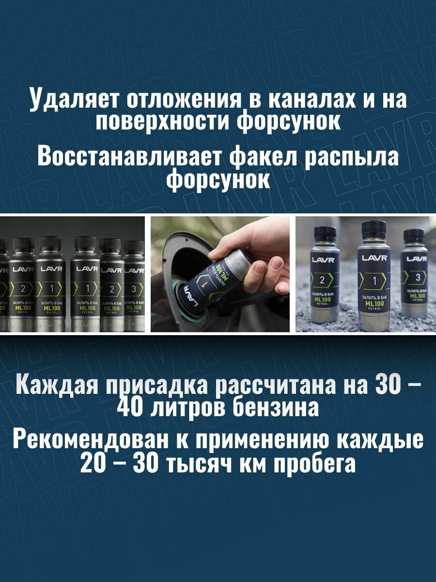 LAVR / ln2137 / Трехуровневая очистка топливной системы ML100 присадка в бензин, 120 мл