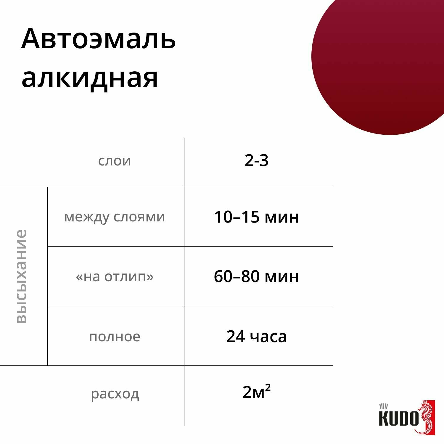 | Число компонентов автоэмали | однокомпонентная |