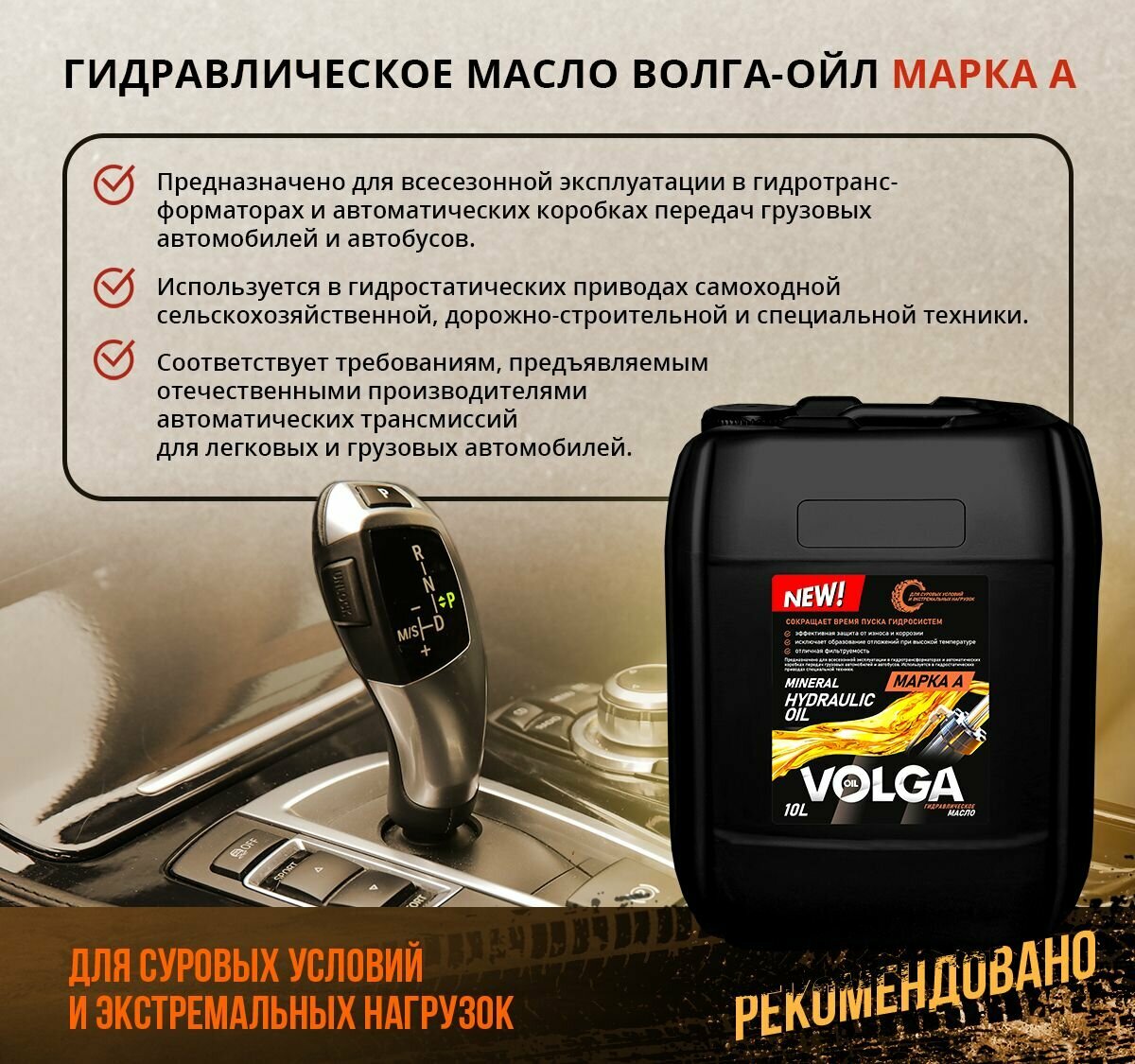 Масло "Волга-Ойл" Гидравлическое Масло Марка "А" 10л Волга-Ойл арт. 800920