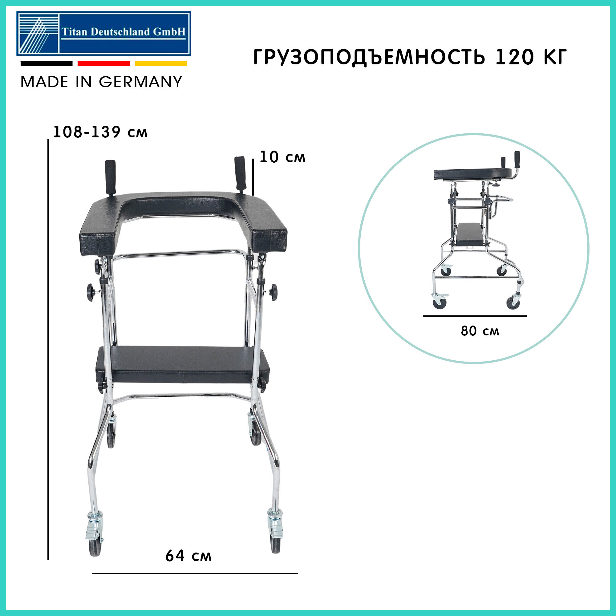Ходунки роллаторы подлокотные германия Titan Deutschland GmbH повышенной грузоподъемностью (до 120 кг) для взрослых, пожилых людей и инвалидов OPTIMAL-KAPPA , LY-971 интересное:
