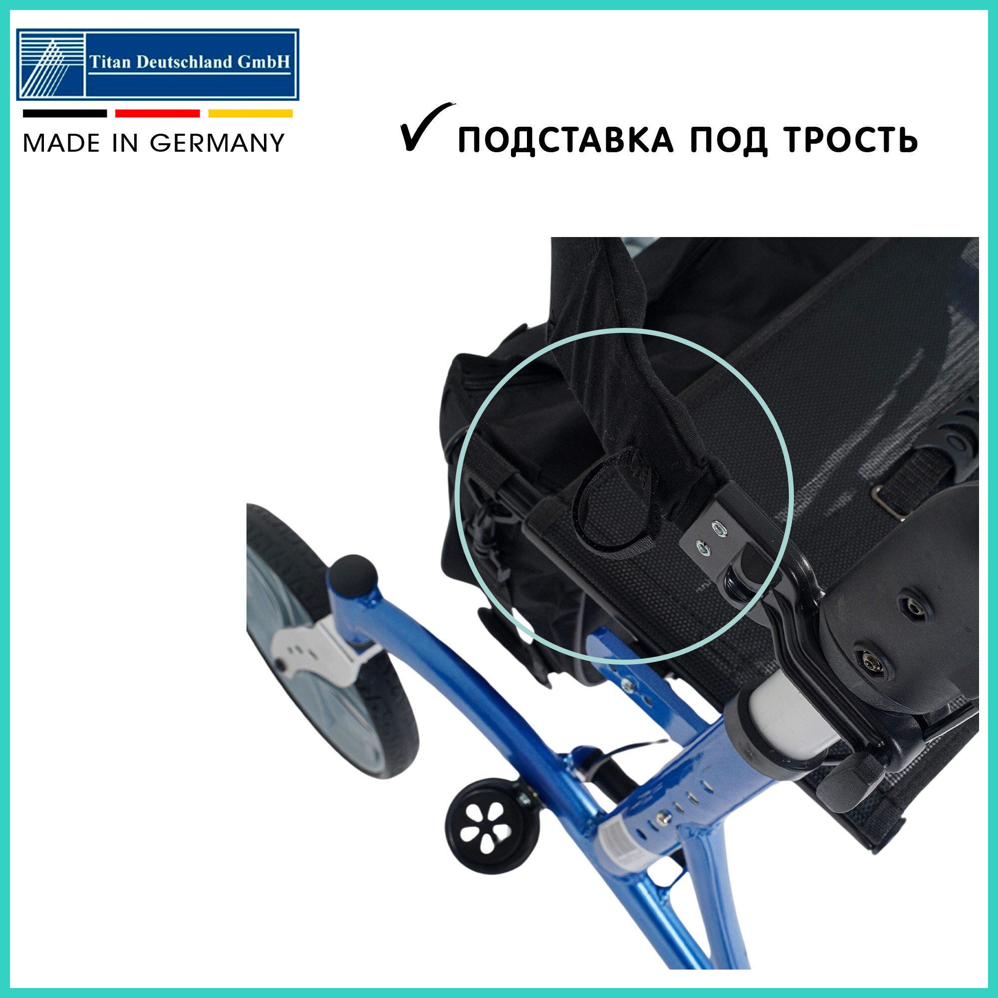 Ходунки роллаторы на четырех колесах германия Titan Deutschland GmbH складные для взрослых, пожилых людей и инвалидов Грузоподъемность 100 кг OPTIMAL-KAPPA , LY-517