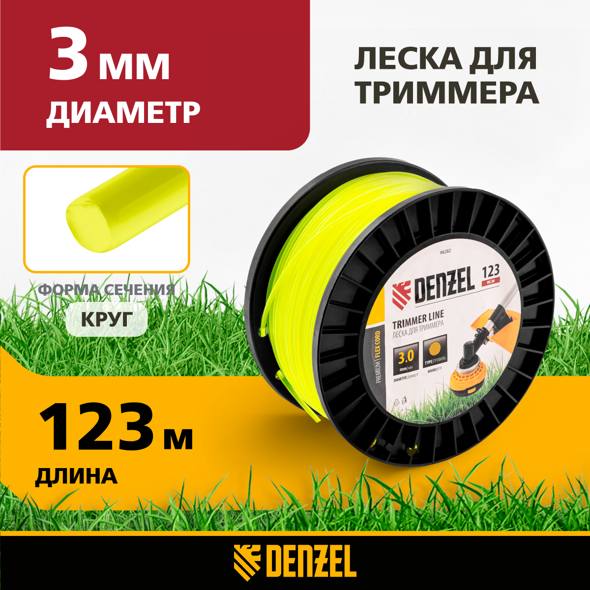 Купить Леска для триммера Denzel круглая 3,0мм х 123м, на DIN катушке FLEX CORD 96282