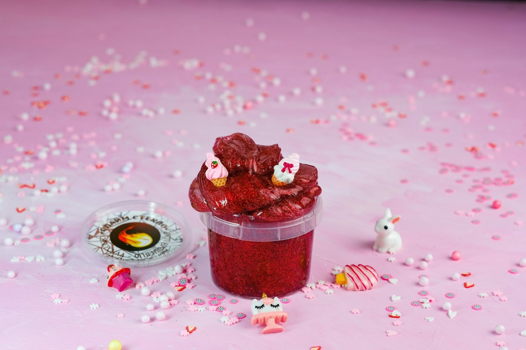 Слайм "Стекло"с эффектом мерцания драгоценных камней рубин