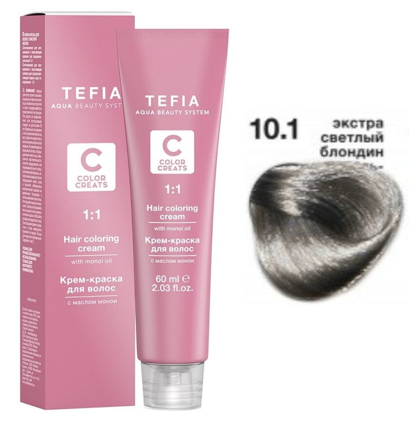 Купить TEFIA ABS Крем-краска для волос с маслом монои, 60 мл Экстра светлый блондин пепельный 10.1