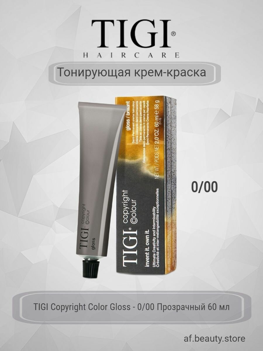 Купить Tigi Copyright Сolour Gloss безаммиачная тонирующая крем-краска № 0.00 прозрачный, 60 мл