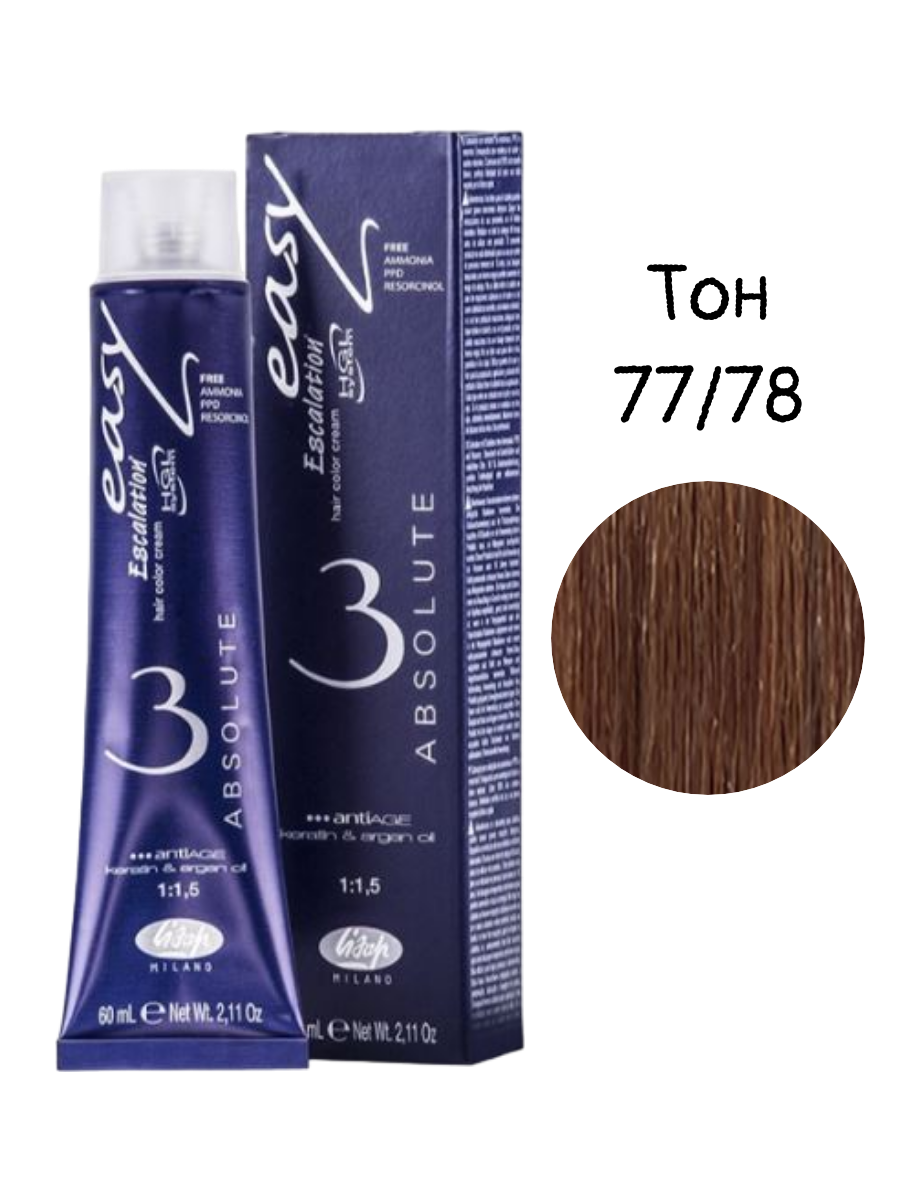 Lisap Milano Escalation Easy Absolute 3 перманентный безаммиачный краситель ореховый тон 77/07 60мл 1шт