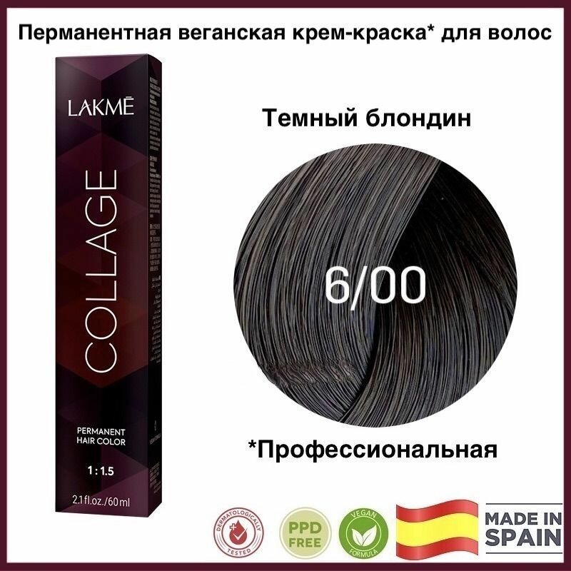 Lakme перманентная крем-краска Collage, 6/00 темный блондин, 60 мл