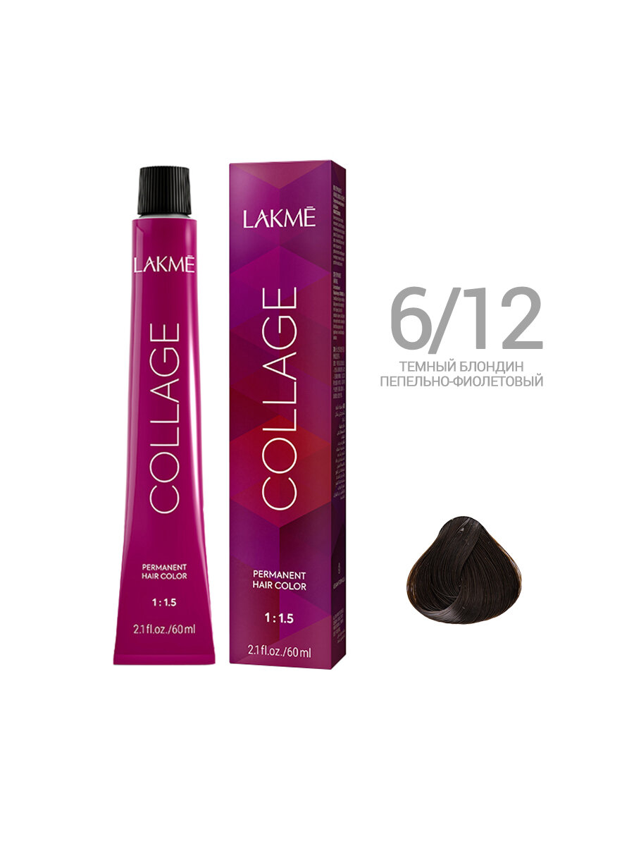 LAKMÉ, COLLAGE, Перманентная крем-краска для волос №7/12, Средний блондин пепельно-фиолетовый, 60мл