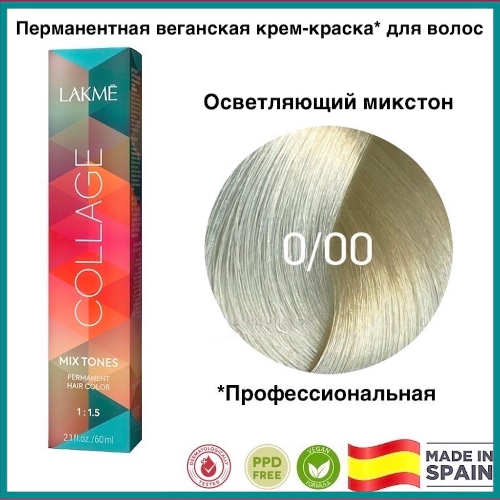 LAKMÉ, COLLAGE MIX, Корректирующая крем-краска для волос №0/00, осветляющий тон, 60 мл