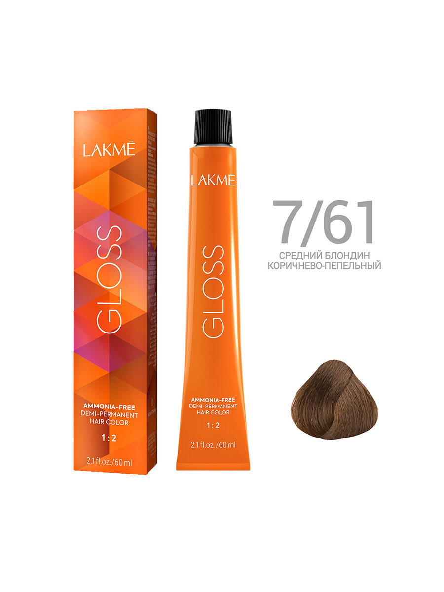 LAKMÉ, GLOSS, Крем-краска для волос тонирующая №7/61, средний блондин коричнево-пепельный, 60 мл