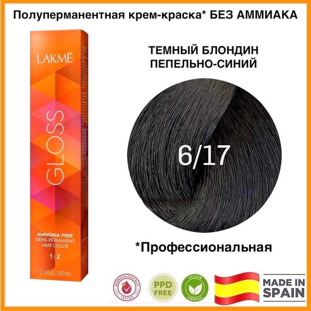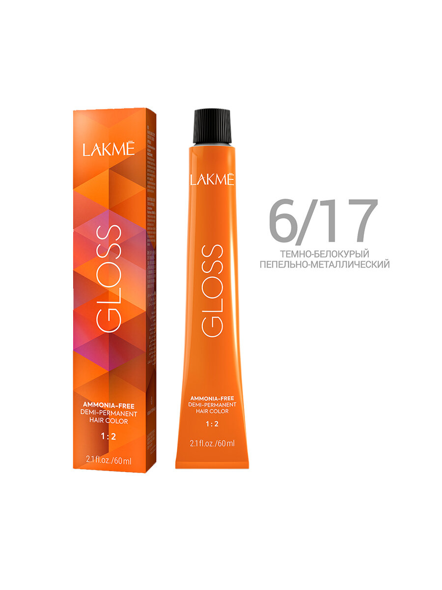 LAKMÉ, GLOSS, Крем-краска для волос тонирующая №6/17, темно-белокурый пепельно-металлический, 60 мл